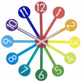 De NeXtime Colour Guide brengt de regenboog bij u in huis. Deze kleurrijke en speelse klok van kunststof past in elke kamer en kan ook helpen met het leren klokkijken bij kinderen door de duidelijke witte cijfers. Deze klok wordt ingeklapt geleverd en kan eenvoudig door u zelf in elkaar worden gezet. Afm. Ø60cm