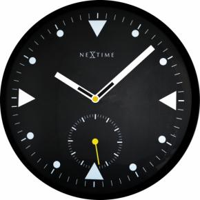 De NeXtime Serious Black wandklok heeft een zwarte wijzerplaat en een uuraanduiding met witte pijlen en stippen, waardoor de tijd eenvoudig is af te lezen. Deze klok heeft een zwarte bolle rand en een bolle glasplaat voor de wijzerplaat met een gele secondewijzer en aparte secondeklok. Door zijn eenvoud schittert deze klok aan de muur in elk interieur. Afm. Ø32cm