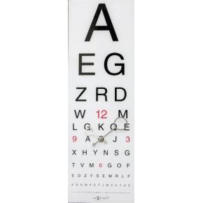 De NeXtime Eyesight wandklok is een klok van glas met een witte wijzerplaat en opengewerkte wijzers. Het design is afgeleid van de oogtest bij een opticien. De zwarte letters staan van groot naar klein. De getallen 3, 6, 9 en 12 zijn in het rood verwerkt. Afm. 75x25,4cm