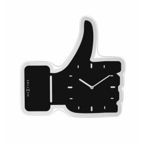 De NeXtime Thumbs Up Black wandklok is erg geschikt om wat positiviteit toe te voegen aan uw interieur. Met het duimpje omhoog geeft u uw interieur een enorme boost. De rand en de uuraanduiding van deze klok is gemaakt van zilver spiegelend glas en heeft een zwarte wijzerplaat. De Thumbs Up kan ook een Thumbs down worden door de klok andersom aan de muur op te hangen. Afm. 40x41.5cm